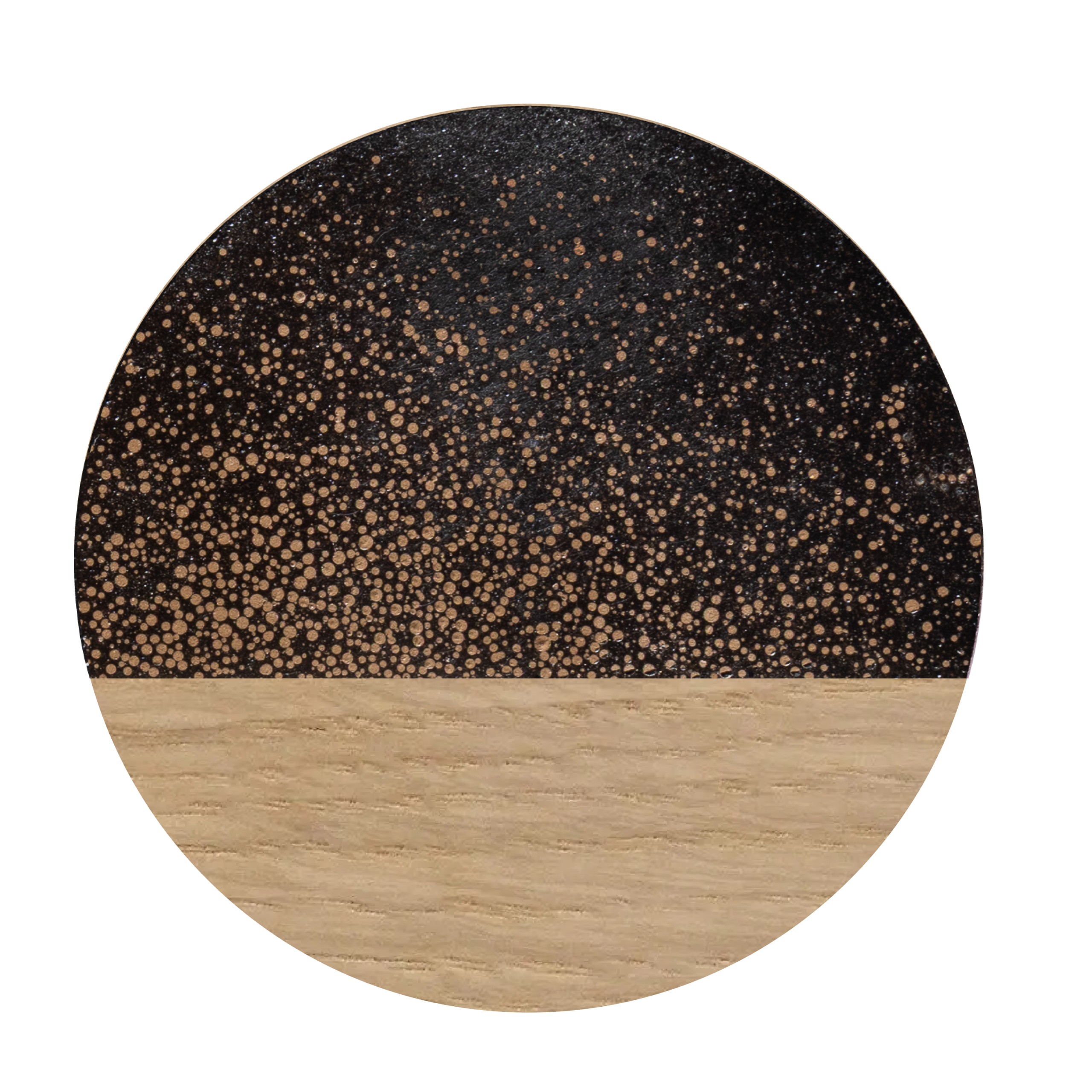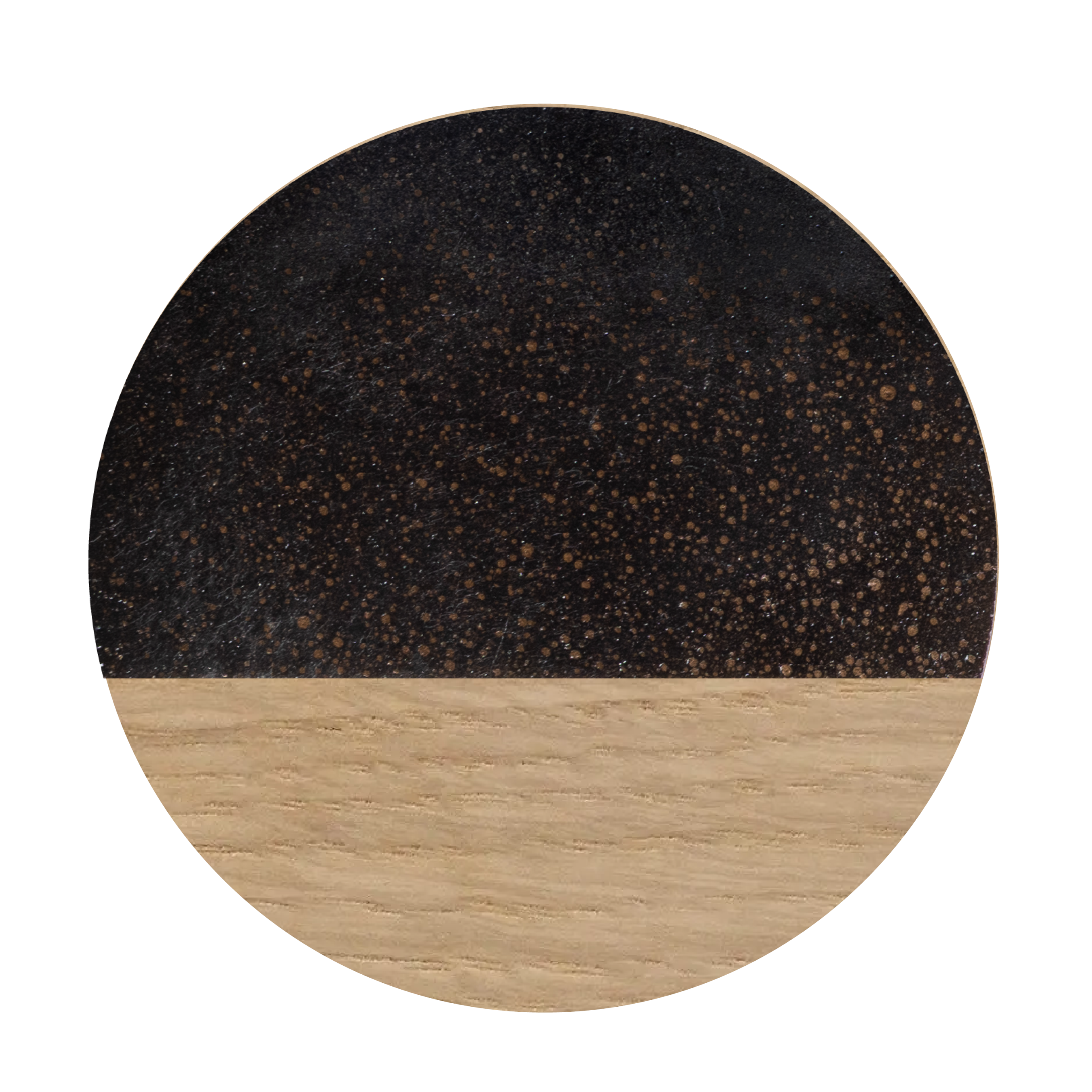 Light and airy, our Latte finish showcases individual coffee grounds in an elegant scattered pattern across a lighter base. This contemporary finish provides textural interest with greater contrast, perfect for those seeking a more dynamic visual statement in their sustainable luxury furniture.